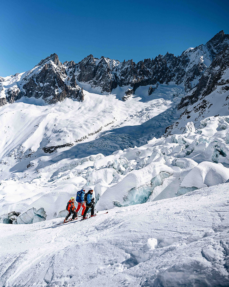 La descente de la Vallée Blanche est une aventure hors-piste exceptionnelle de plus de 20 km sur la journée. Elle est accessible aux skieurs ayant un bon niveau de ski hors-piste et est encadrée par un Guide de Haute Montagne diplômé.
